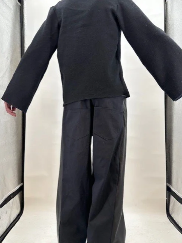 This page showcases my garment designs from concept to creation, including original patterns, constructed pieces, and digital simulations in CLO3D. It highlights my process of translating ideas into wearable forms, blending technical pattern-making with 3D visualization to explore fit, movement, and silhouette.