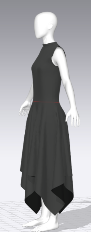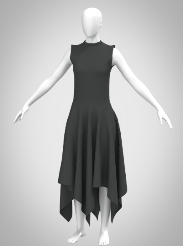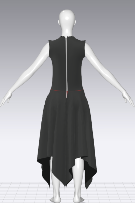 This zero-waste dress was designed in CLO3D and later constructed by hand, exploring how digital tools can support more sustainable pattern-making. The garment was developed to use the full width of the fabric, minimizing leftover material while shaping the silhouette through intentional paneling and construction.